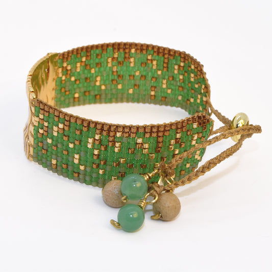 GOLD LACE BRACELET IN GOLD, EMERALD GREEN AND COPPER