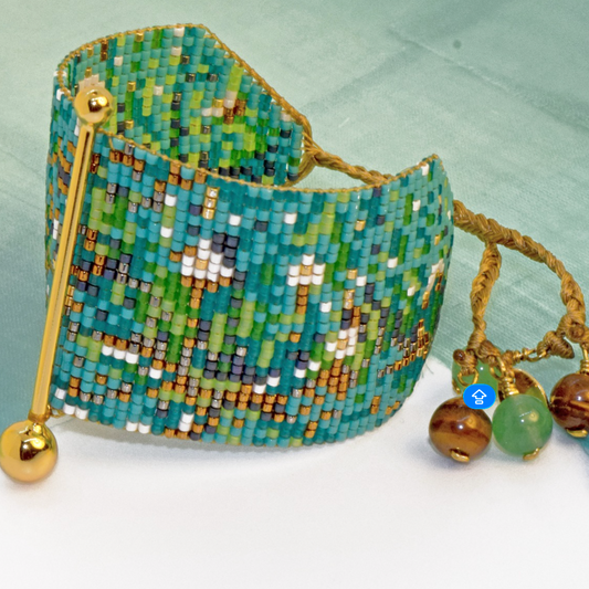 FINE ART BRACELET IN BRONZE, TURQUOISE, AQUA GREEN, BLUE AND WHITE