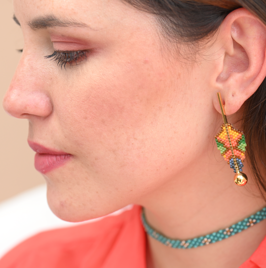 FINE ART EARRINGS IN COPPER, ORANGE, YELLOW, GREEN AND BLUE