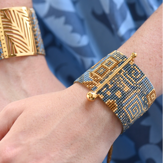 CLOVIS BRACELET IN GOLD, LIGHT BLUE AND METALLIC GRAY