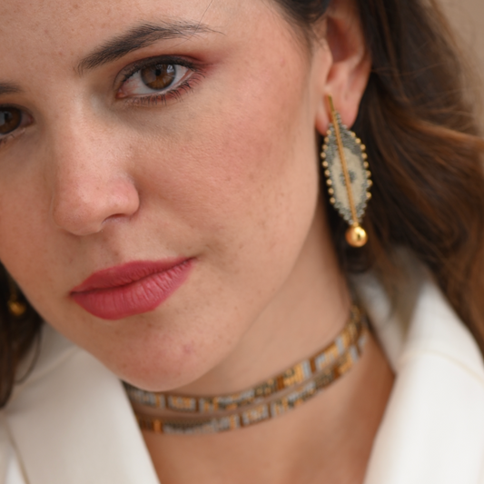 FINE ART EARRINGS IN GOLD, GUNMETAL AND BEIGE